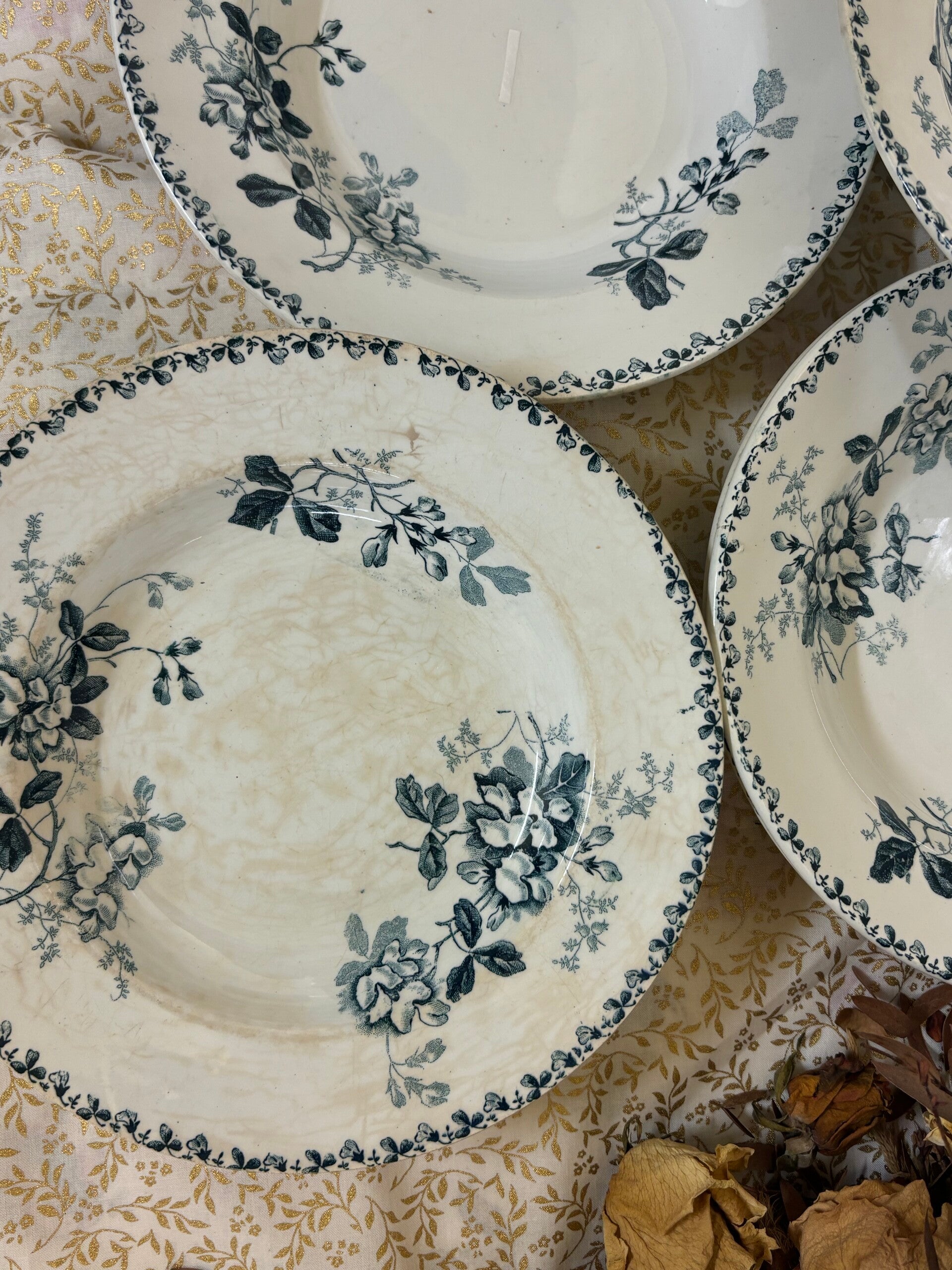 Très belles assiettes à soupe en terre de fer, modèle Acacia, de la marque Moulin des Loups, une possède un cheveu, d'autres des taches brunes