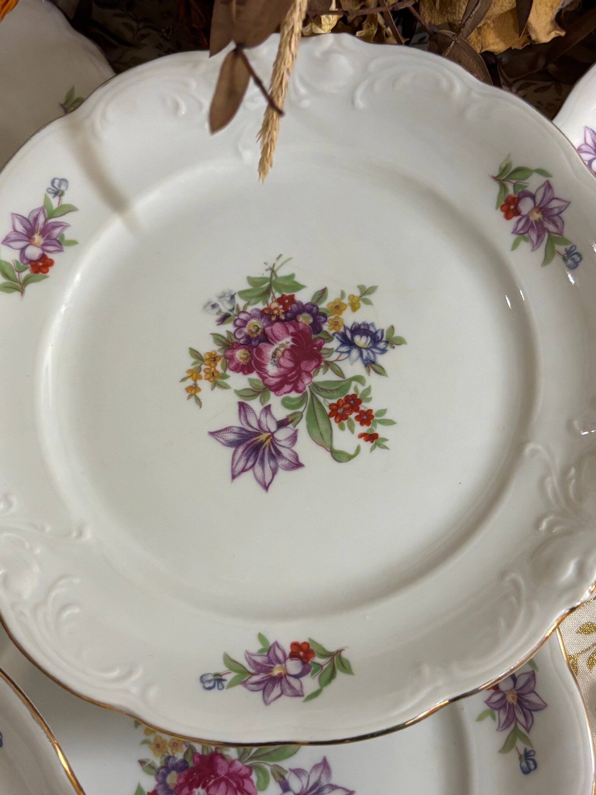 Jolies assiettes à dessert en porcelaines, motif fleuri, made in Poland