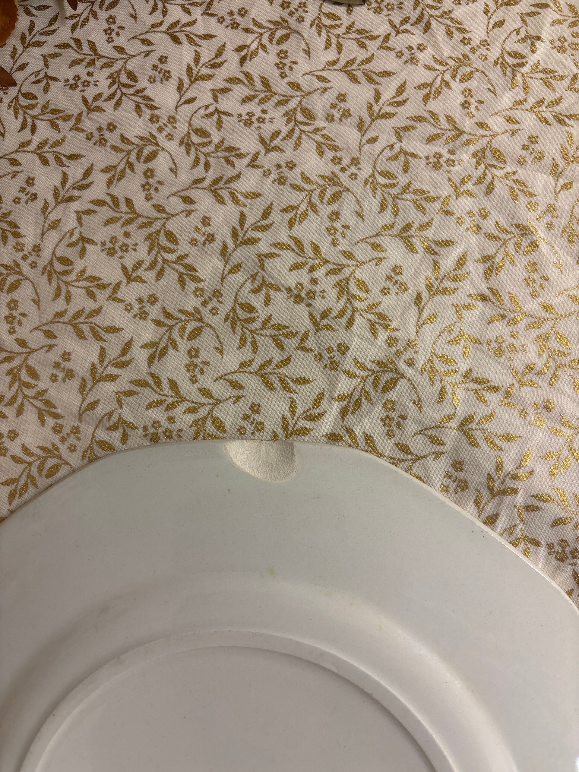 assiettes plates saint-Amand et hamage, joli motif fleuri. Une assiette est ébréchée dessous, mais invisible lorsqu'elle est posée.
