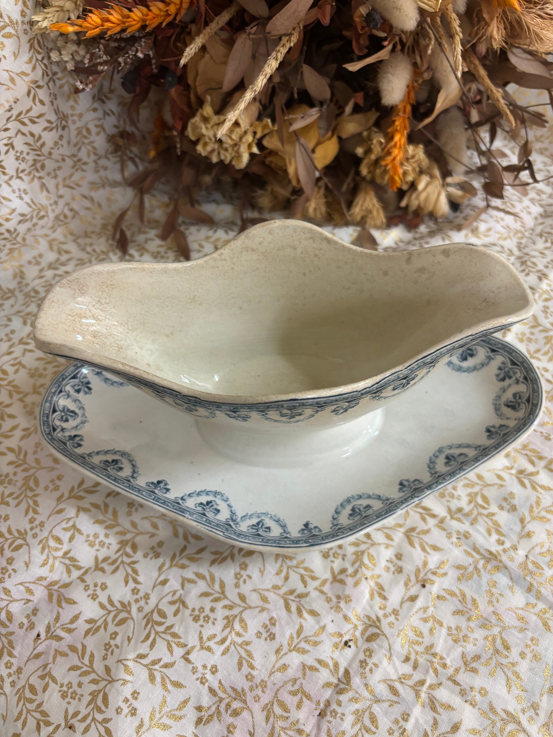 Très jolie saucière avec une belle patine, modèle terre de fer Santiago, de la faïencerie saint Amand et Hamage.