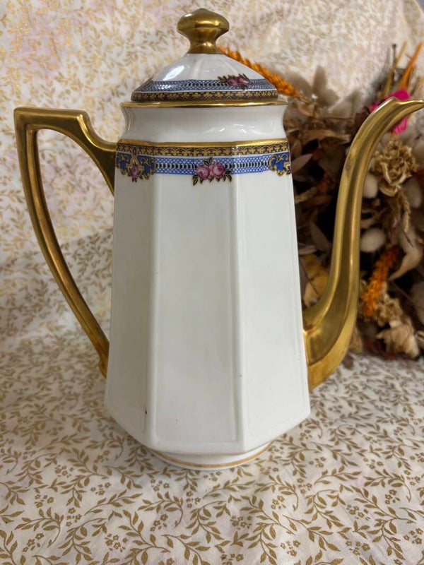 Très beau service à café en porcelaine de Limoges, composé d'une cafetière, un pot à lait et un sucrier. En excellent état.