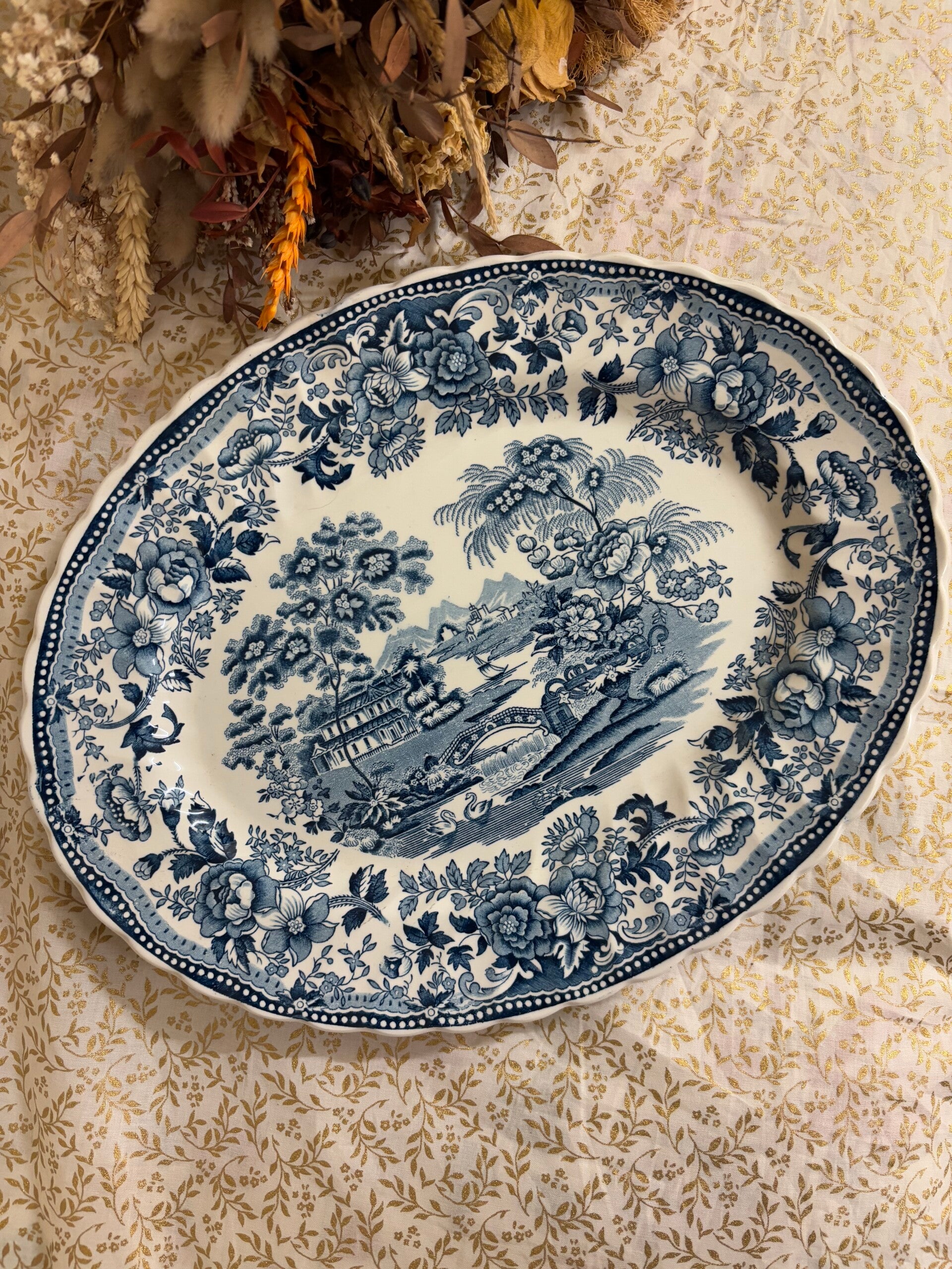 Très beau et grand plat ovale, en porcelaine anglaise, marque Churchill "Thé old Collection", en parfait état 38x29