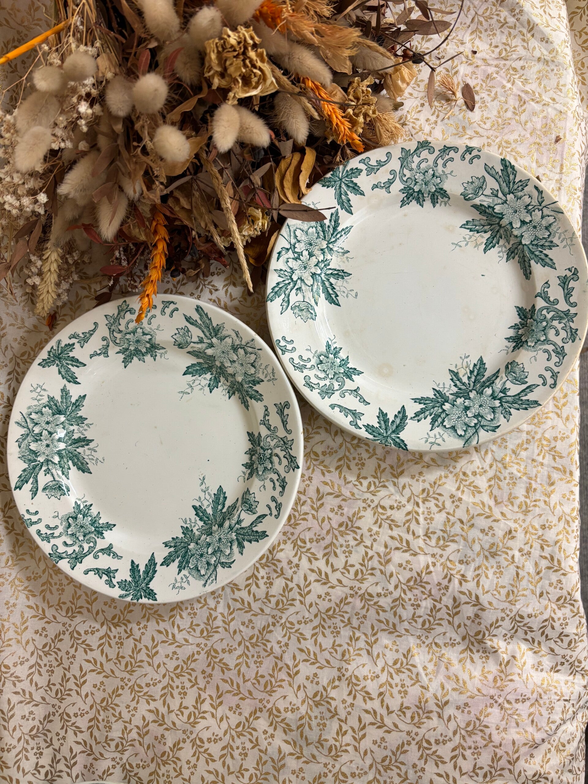 Lot de 2 très jolies assiettes plates, modèle Anémones de St Amand. Pas de fêle ni d'éclat, mais jolie patine du temps et légères taches dues à leur âge et à leur utilisation.