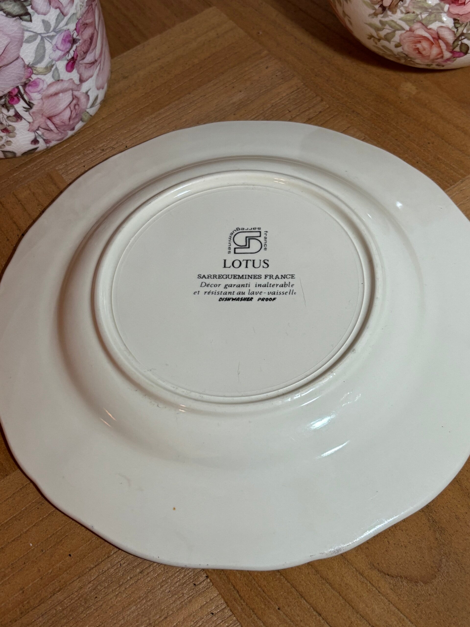 2 Très jolies assiettes à dessert en terre de fer, modèle Lotus de Sarreguemines, en parfait état.