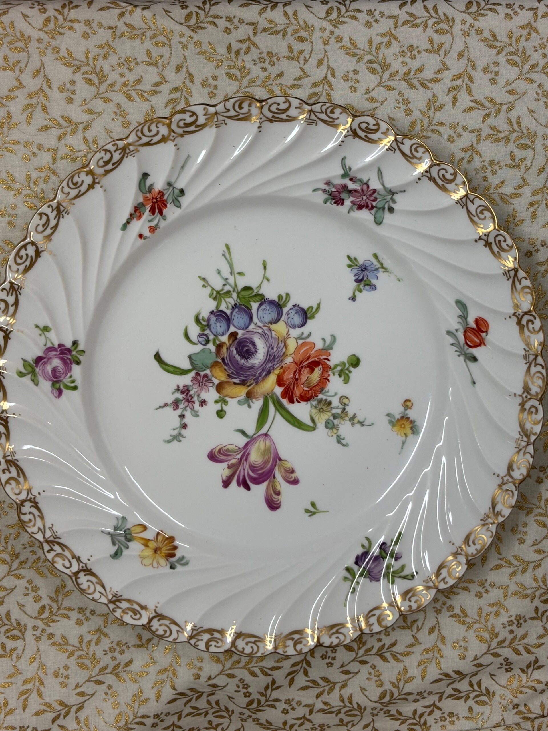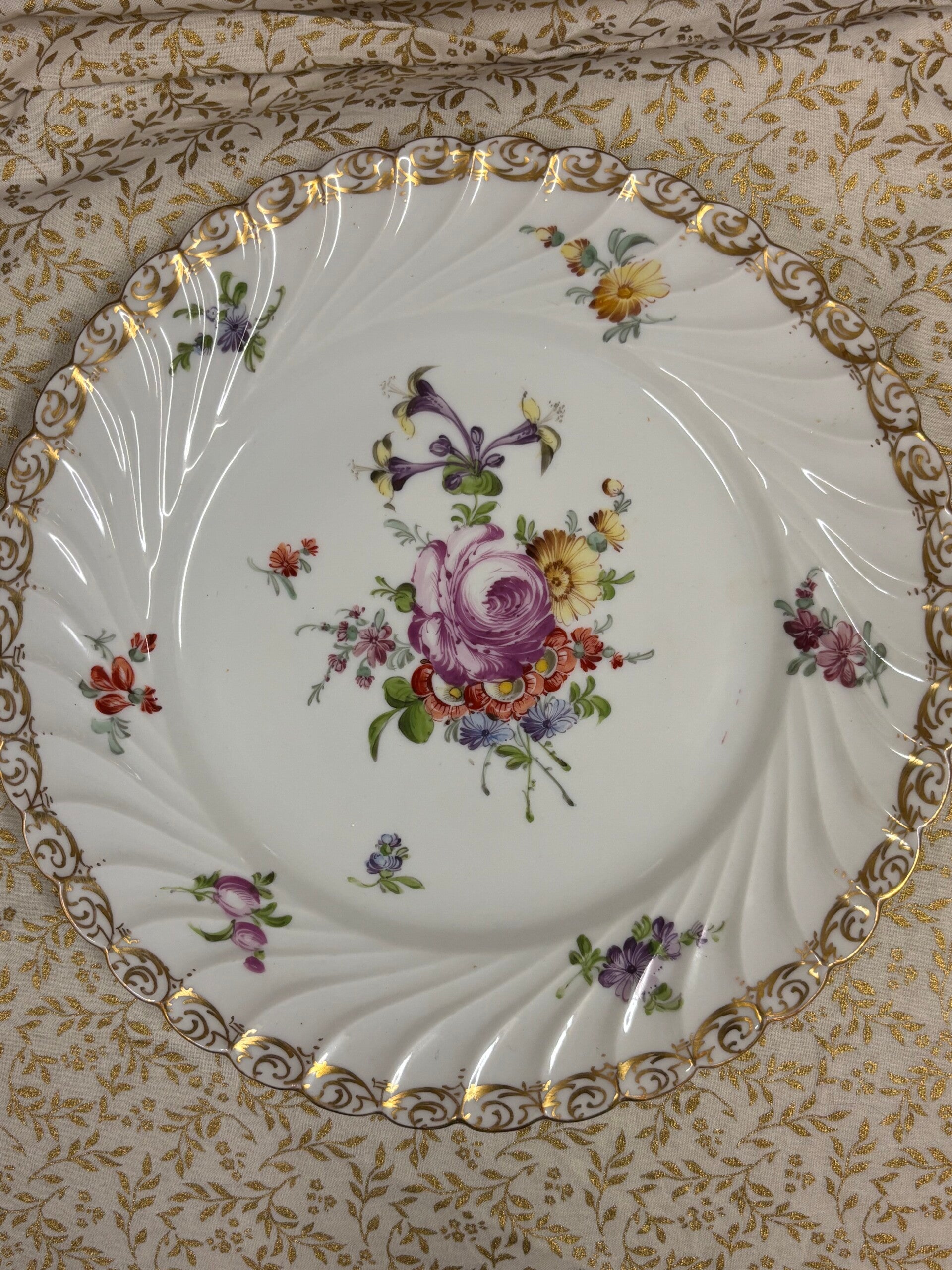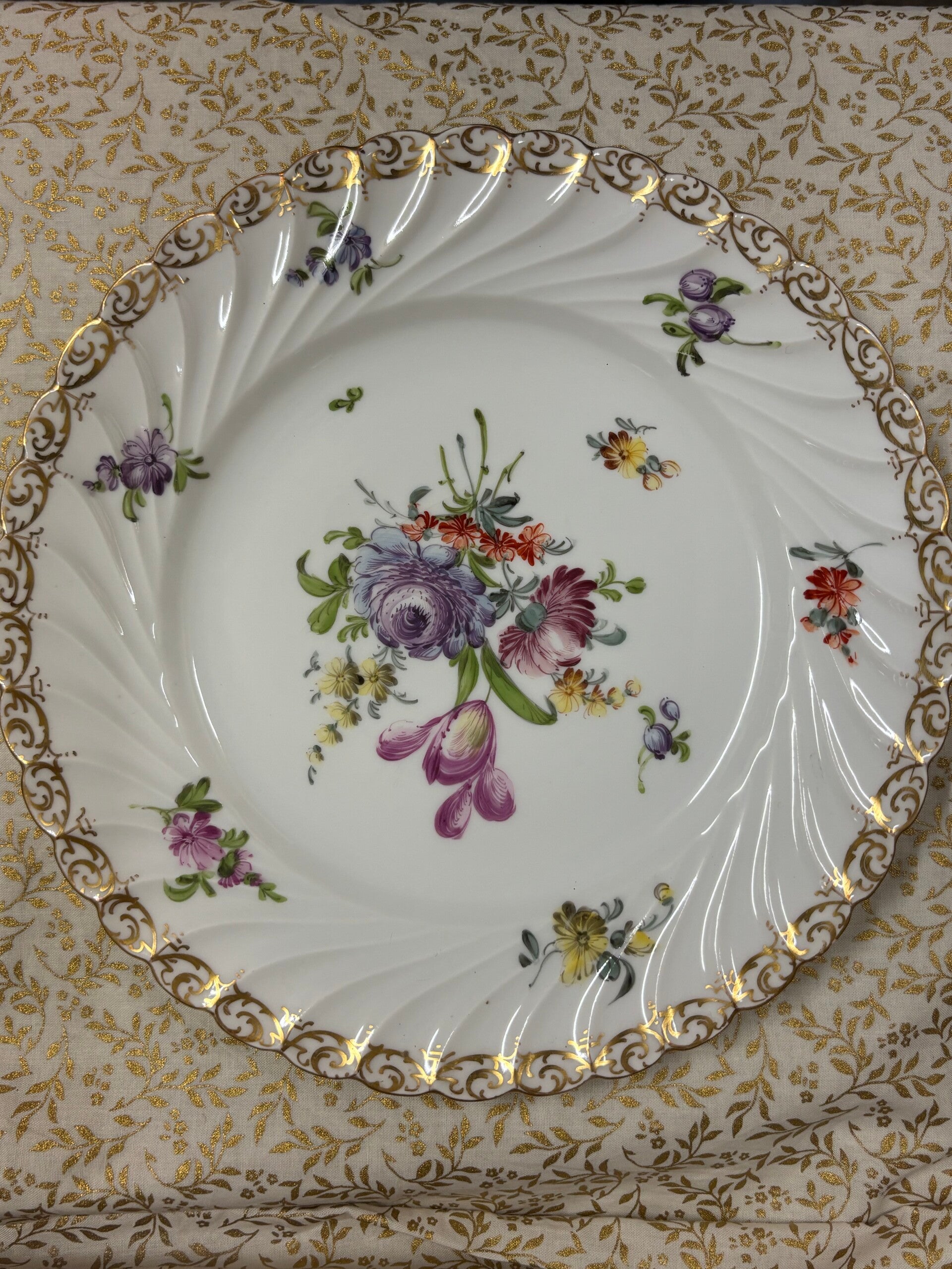 Superbes assiettes en porcelaine de Dresde, peintes à la main, motifs fleurs, 8 modèles différents