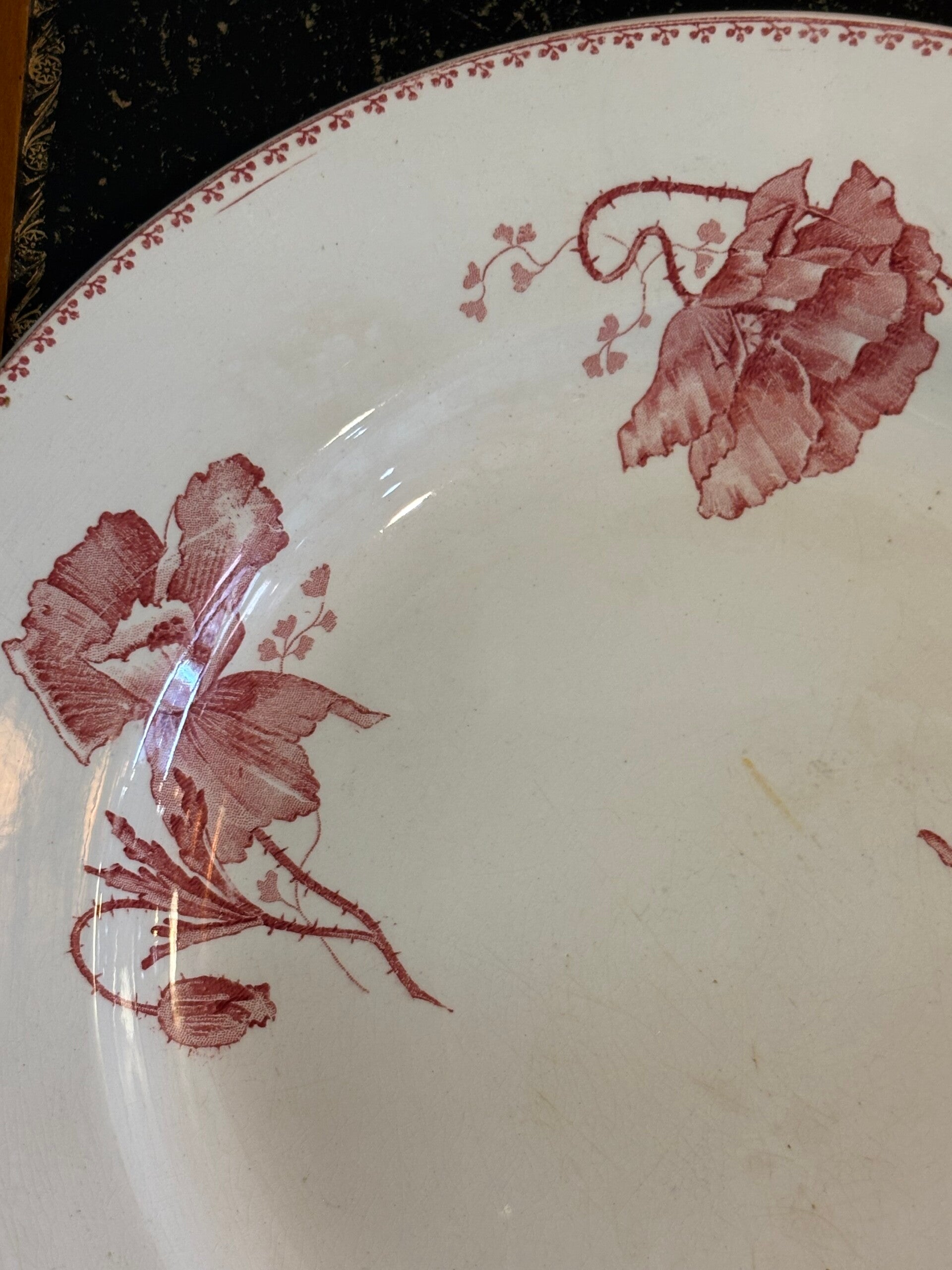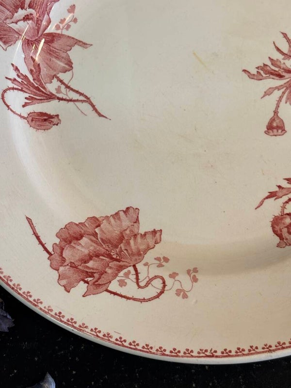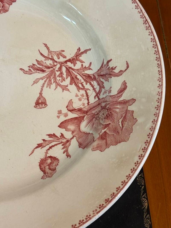Grand plat en terre de fer rose, modèle "feria" de Sarreguemines, diamètre 31 cm