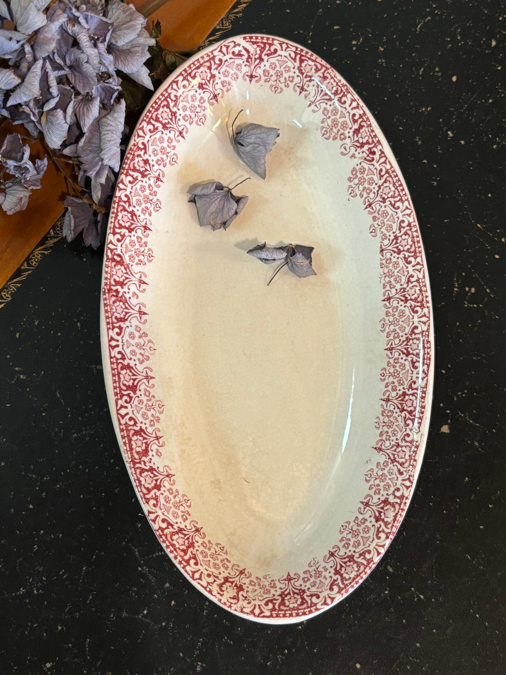 Ravier, en terre de fer rose, modèle "Feston" manufacture KG, Lunéville, dimension 24 × 13 cm
